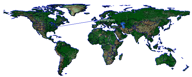 Fig 9.1: Trace Route MapThe trace route is displayed on a map of the World. Links drawn in blue indicate known locations. Links drawn in purple indicate that a guess was made.