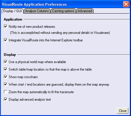 11. VisualRoute Preferences Dialog