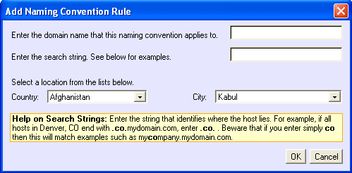 Database Updater... - This launches a dialog box which allows you to add node naming conventions and locations to IP addresses. It is also now where you can set your home location