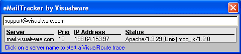 eMailTracker... - A tool that allows you to track email servers, given an email address. However, if you are looking to track an actual e-mail received, use eMailTrackerPro.