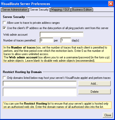 VisualRoute Server... (Business and Server editions only) - Launches the VisualRoute server preferences and setup dialogs