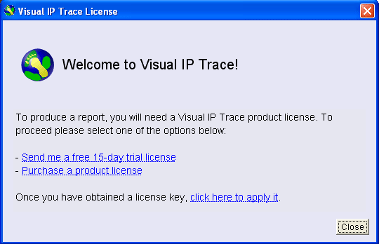 Fig 2: Running Visual IP Trace for the first time