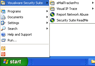 Once you have successfully installed Visual IP Trace then you can start the application. Visual IP Trace provides 4 different and quick ways to access and run a trace analysis, via standard components of the Microsoft Windows desktop environment. You may use any or all of these methods to initiate an trace. The figures below illustrate the 4 access options.